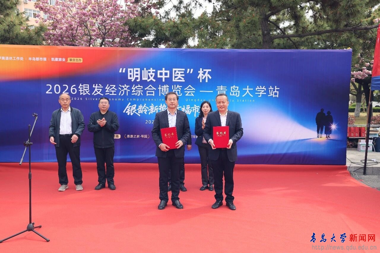 开幕式上,宋佐东与谭延仲上台,代表青岛大学离退休工作处与青岛半岛都市文化传播有限公司签订银发服务战略合作伙伴协议。此次签约标志着双方将深化校媒合作、整合资源、优势互补,共同深耕银发服务领域,打造长效化为老服务平台,助力构建“学术+产业+媒体”融合共生的银发经济新生态,这也是双方深化党建共建、探索校媒合作新模式的具体实践。